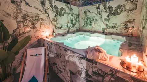 Idealne miejsce na relaks? Właśnie je znalazłeś. Jacuzzi VIP w Termach Gorce to Twoja prywatna oaza, gdzie nikt nie zakłóci Twojego spokoju. To gwarancja intymności i regeneracji, na którą zasługujesz. Zanurz się w termalnej wodzie, włącz swoją ulubioną playlistę i pozwól, by otuliły Cię bąbelki z hydromasażu. Prawda, że brzmi dobrze?