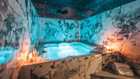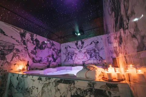 Pozwól, by ciepła woda i tysiące bąbelków zmyły z Ciebie stres, a klimat wieczoru wykreuj wedle własnych zasad. Masz pełną swobodę – od ulubionej playlisty w tle, po wizualizacje na projektorze. Dopełnieniem chwil luksusu będą drinki i przekąski, które nasza obsługa poda Wam prosto do jacuzzi. Poczuj się wyjątkowo.